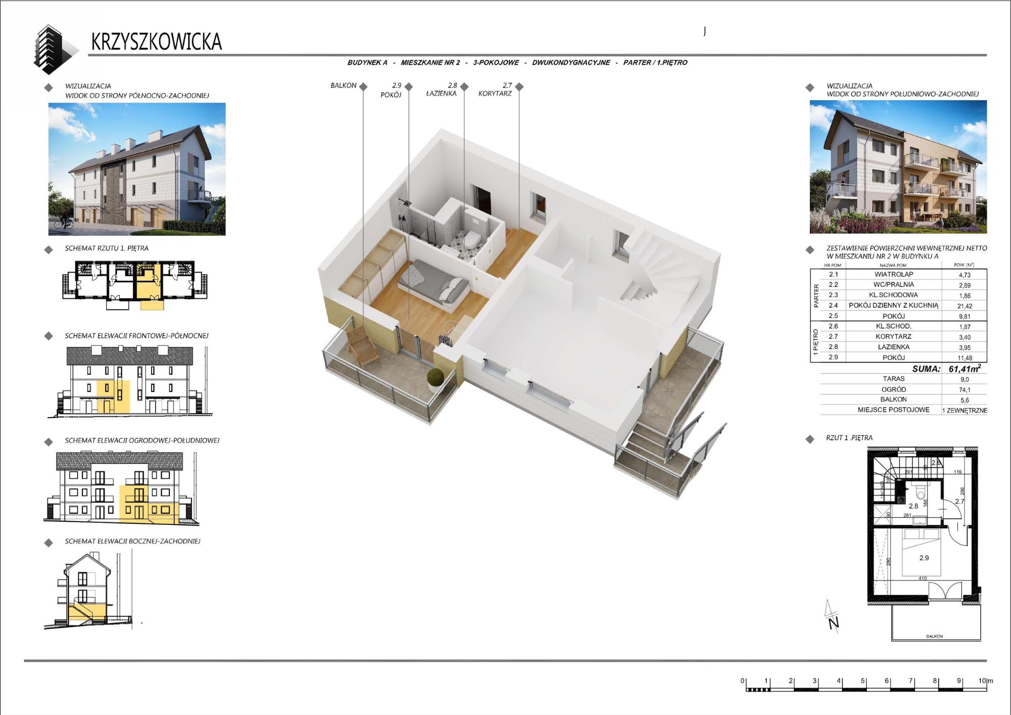- Powierzchnia użytkowa mieszkania (netto): 61,41 m²,